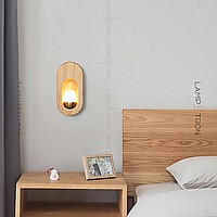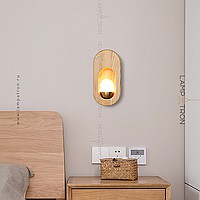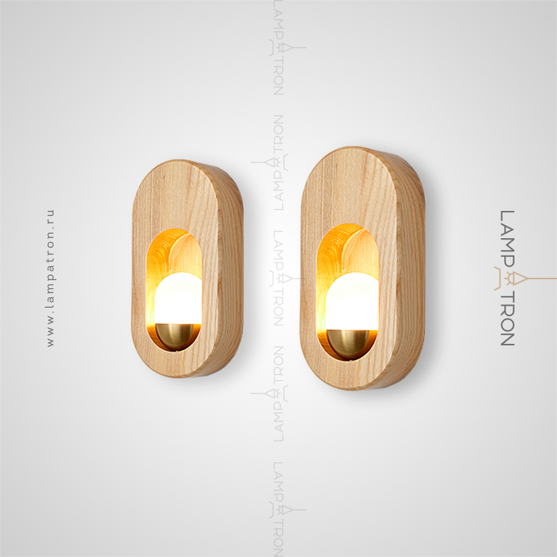 Wall lamp-installation with a white spherical ceiling inside the arched body made of white wood