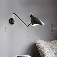 A series of wall lamps with a rotary ceiling in the form of a truncated cone on a curved bracket