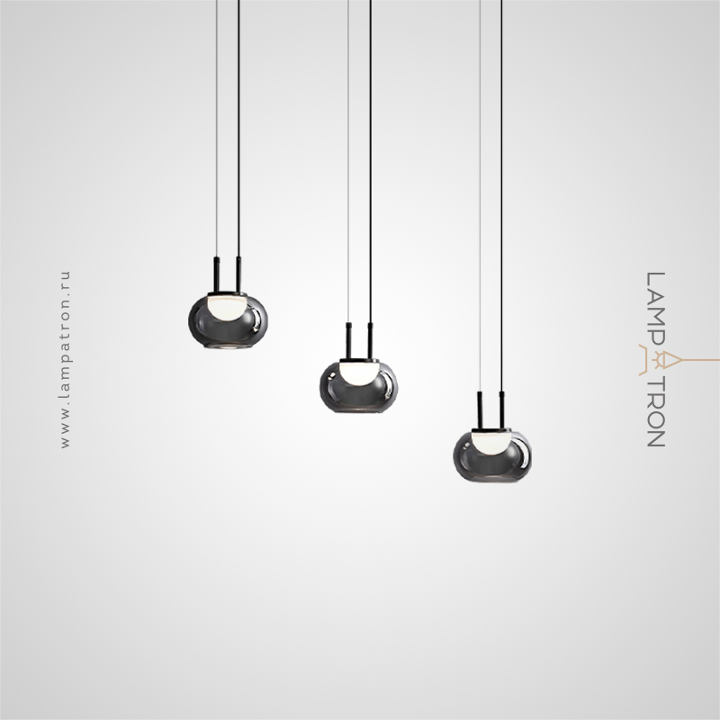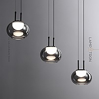 Ready-made combination of pendant LED lamps with three spherical shades in smoky glass lampshades