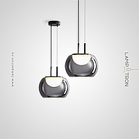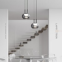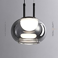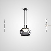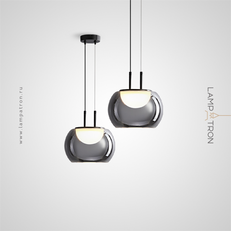 Pendant LED lamp in the form of a combination of a white spherical shade and a smoky glass lampshade