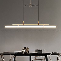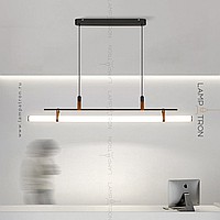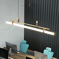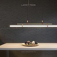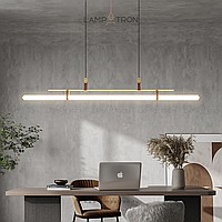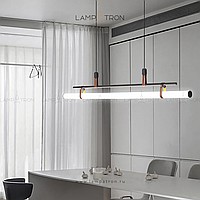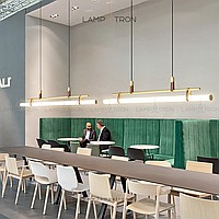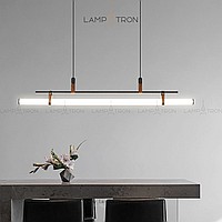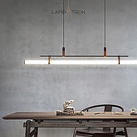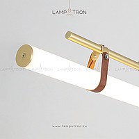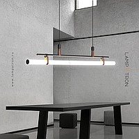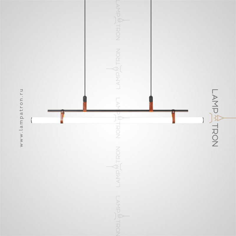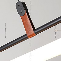 A series of rack LED lamps with a white cylindrical ceiling suspended on leather straps