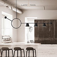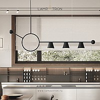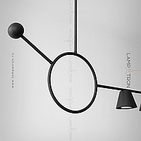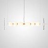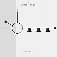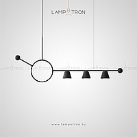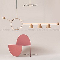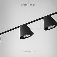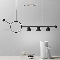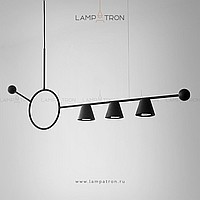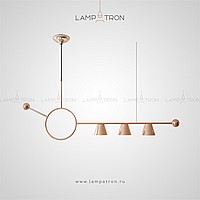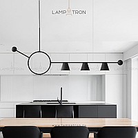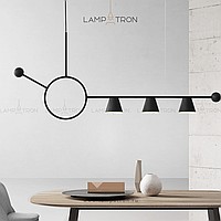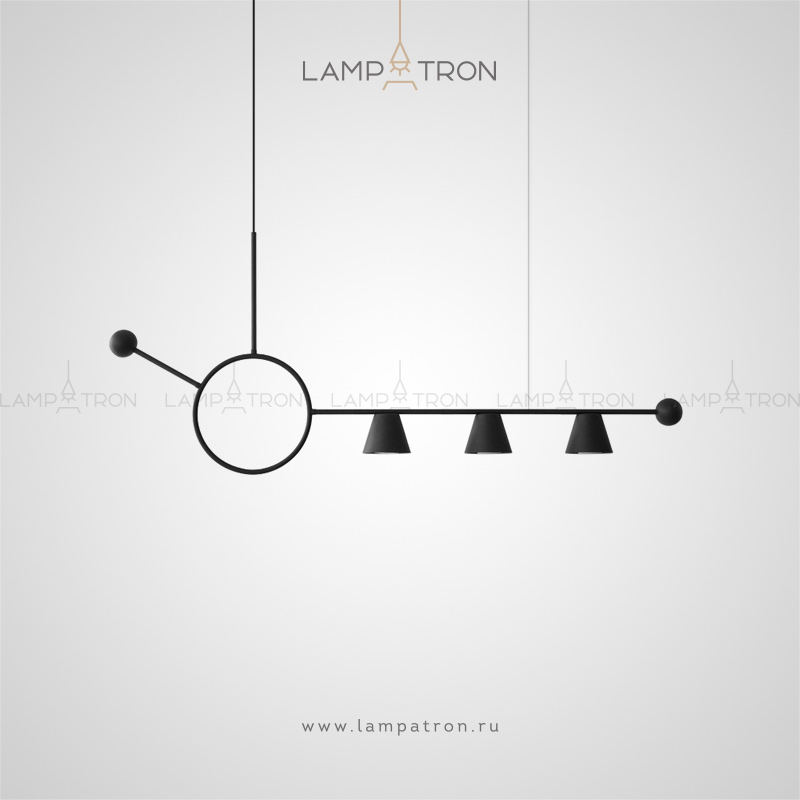 A series of in -line LED lamps with cone -shaped ceilings and decorative balls at the ends