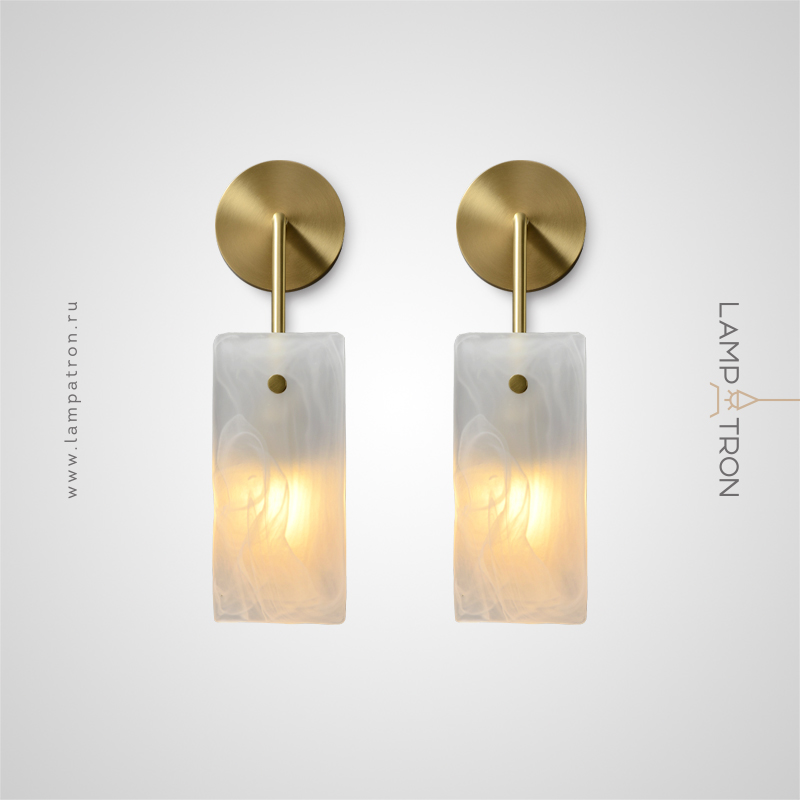 Wall lamp with rectangular glass diffuser with frost effect on the corner crown