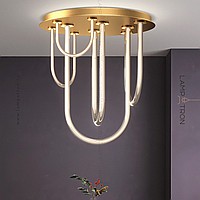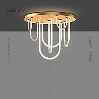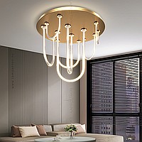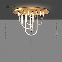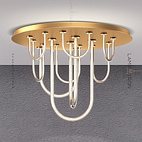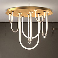 A series of ceiling LED chandeliers with tubular arceprints on a disco base