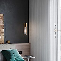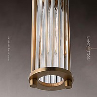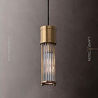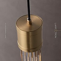 Suspended lamp with a cylindrical plafon of glass rods in bronze frame