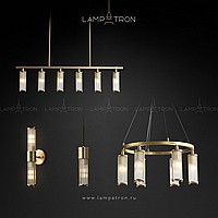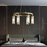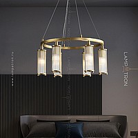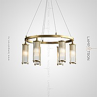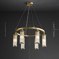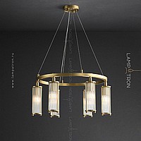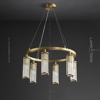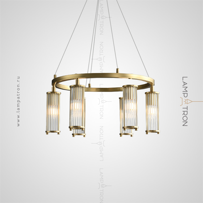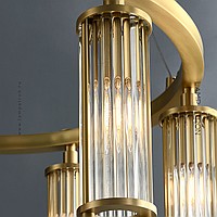 Ring chandelier with cylindrical patches of glass rods in bronze frame