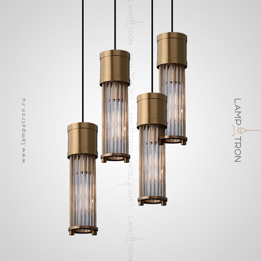 Suspended lamp with a cylindrical plafon of glass rods in bronze frame