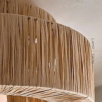 Oriental-style ceiling chandelier with two-tiered rattan palm lampshade