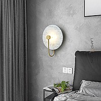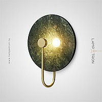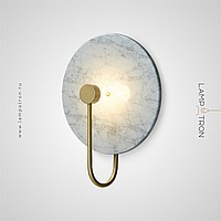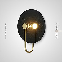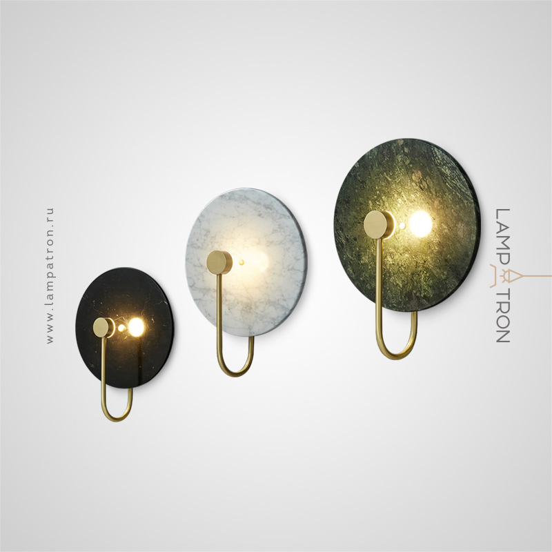 A series of LED wall lamps with a point source on a disc-shaped base made of marble