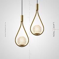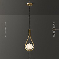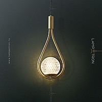 Suspended lamp with a spherical ceiling with a crystalline relief on a drop -shaped frame