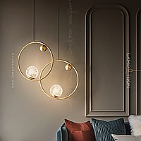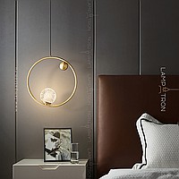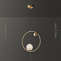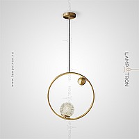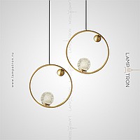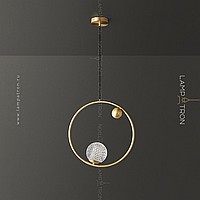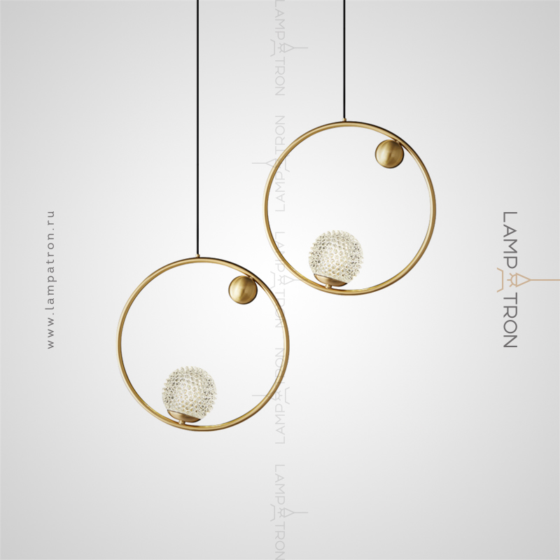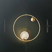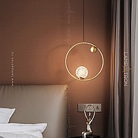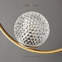 Suspended lamp with a spherical ceiling with a crystalline relief and a decorative metal ball on a ring frame