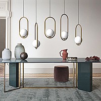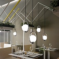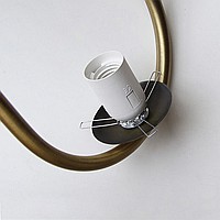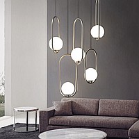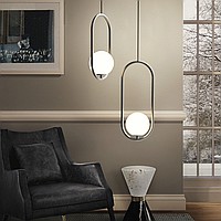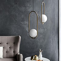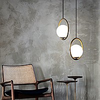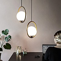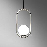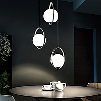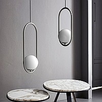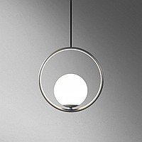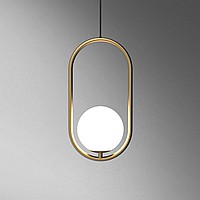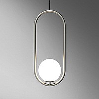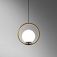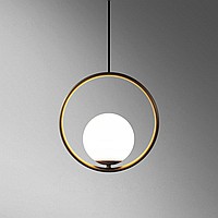 A suspended lamp with a ring designer frame and a glass shaft glass.