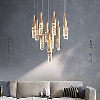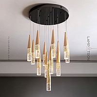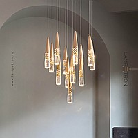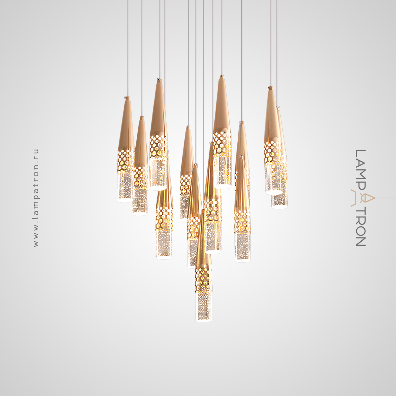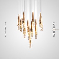 Ready-made combination of pendant LED luminaires with crystal diffusers in a conical housing with perforations