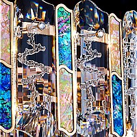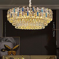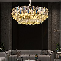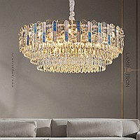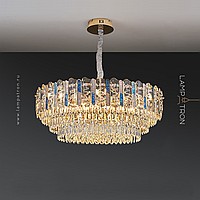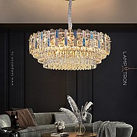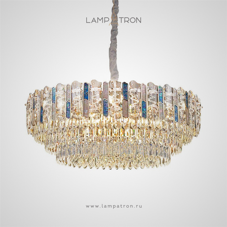 A series of LED chandeliers with crystal diffusers and mother-of-pearl decorative inserts in two colours