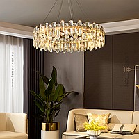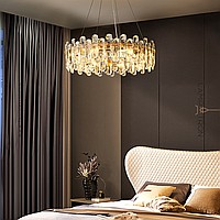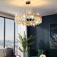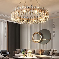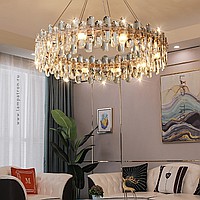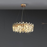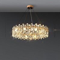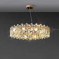 A series of ring chandeliers with diffusers in the form of crystal plates of original shape