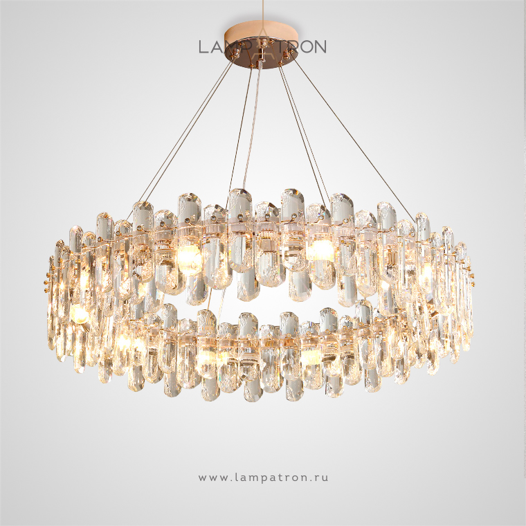 A series of ring chandeliers with diffusers in the form of crystal plates of original shape