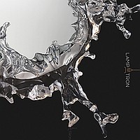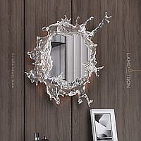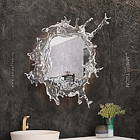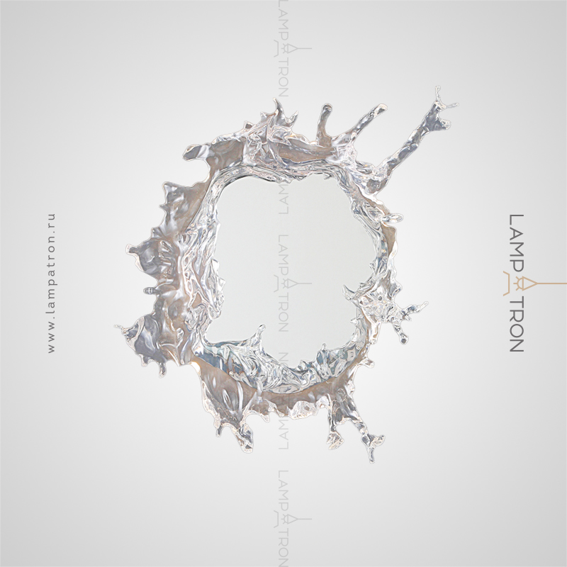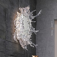 Wall lamp-mirror with LED lighting along the contour of the case with transparent disperseers stylized under spray of water