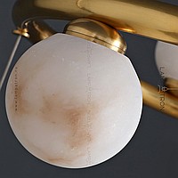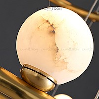 A series of LED chandeliers on a red ring frame with spherical ceiling from natural marble