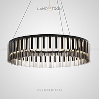 Pendant chandelier in the form of a ring from a series of tinted glass cylinders with LED lamps inside
