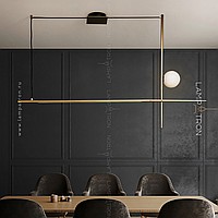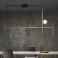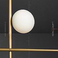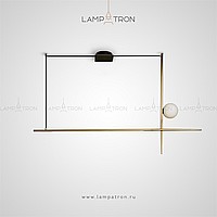 A rack lamp with a spherical ceiling on a vertical rack and a LED panel on a horizontal rail