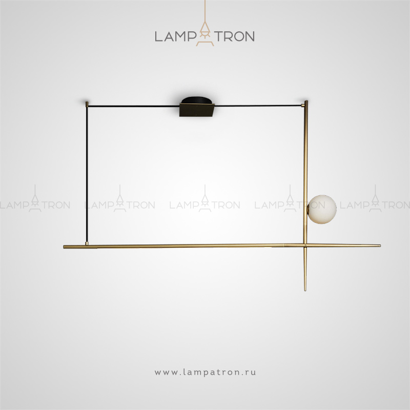 A rack lamp with a spherical ceiling on a vertical rack and a LED panel on a horizontal rail