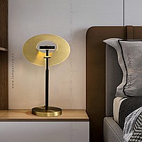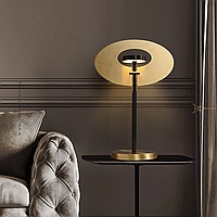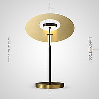A desktop LED lamp in the form of a combination of a round ceiling on a vertical rack and a disco -shaped scatter