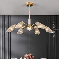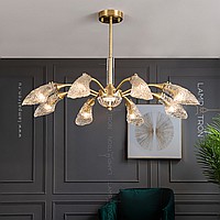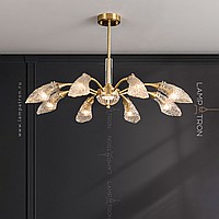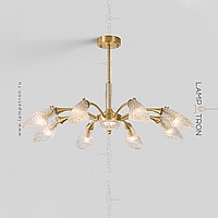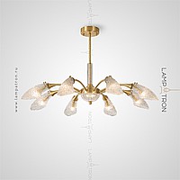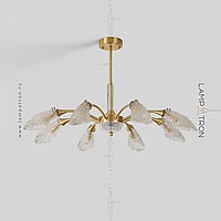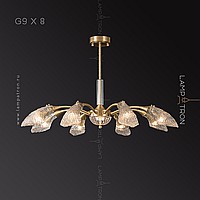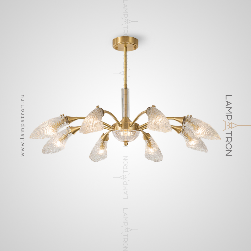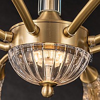 A series of chandeliers on a radial frame with a directed lampless glass with relief glasses
