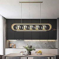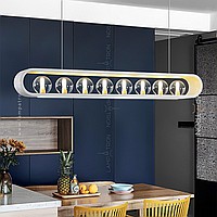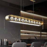 A series of in-line lamps with glass spherical ceiling in a closed looped case with a lower LED lighting