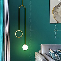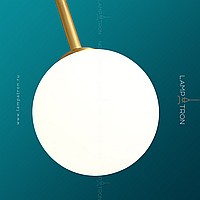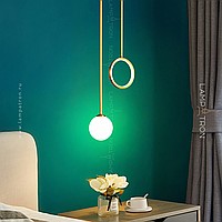 LED lamp with a spherical matte glass of glass and a luminous ring at the ends of an arched rack