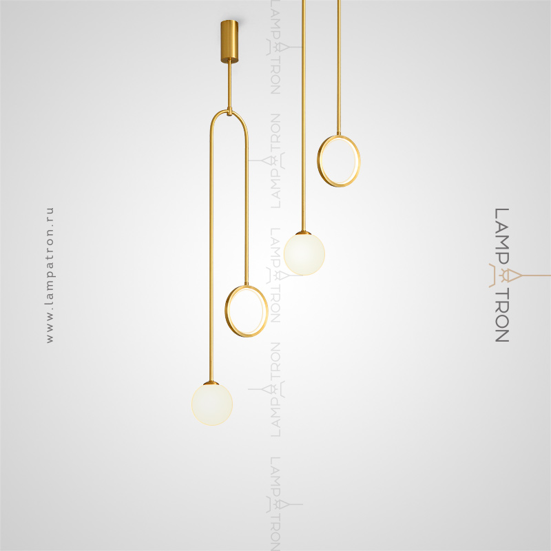 LED lamp with a spherical matte glass of glass and a luminous ring at the ends of an arched rack