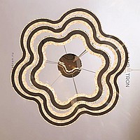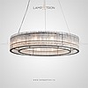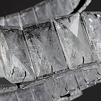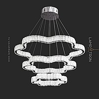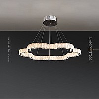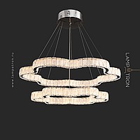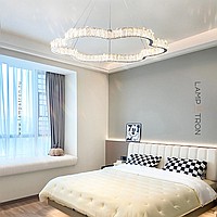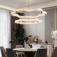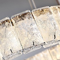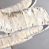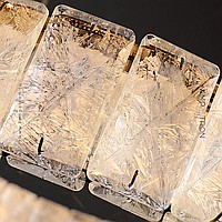 A series of LED chandeliers with crystal plate décor with a frost pattern on a ring body
