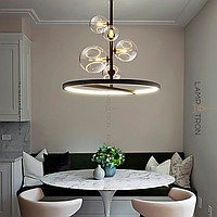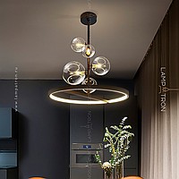 Lamp with spherical ceiling of different diameters and a wide LED ring