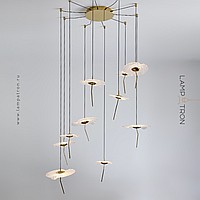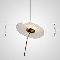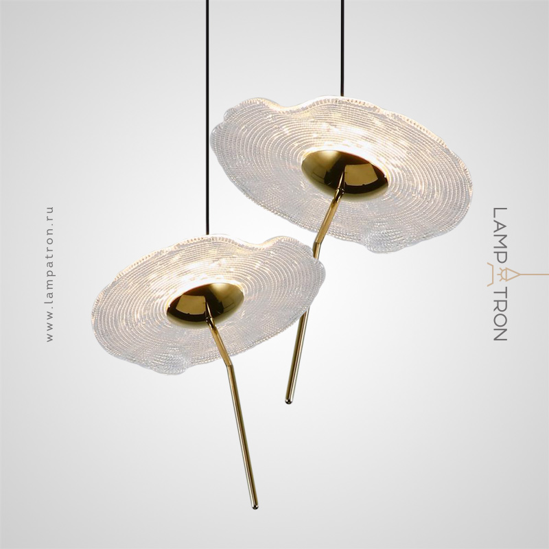 A series of pendant lamps in the form of figured disks made of handmade glass
