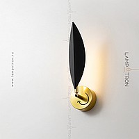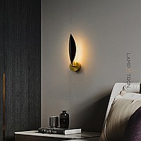 A series of wall LED lamps with a black leaf -shaped scatter on the bracket shade of brass
