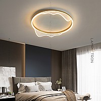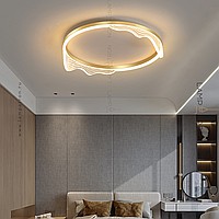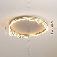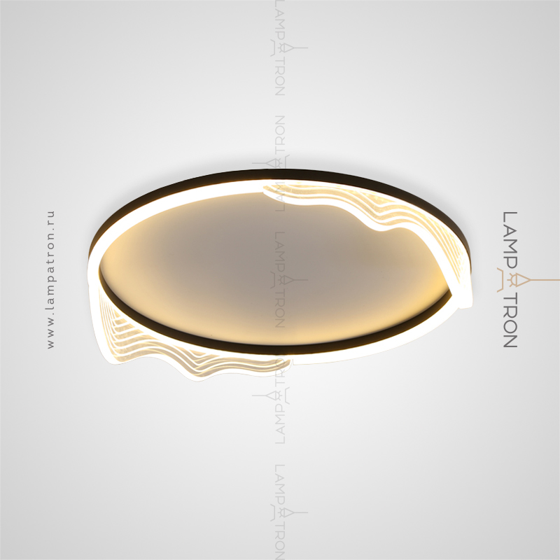 Ceiling lamp with wave-shaped transparent disperfitmers with engraving and led-lighting along the contour of the discoid case