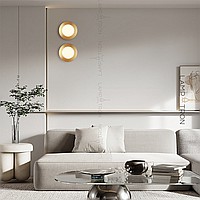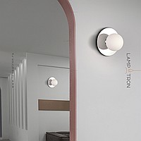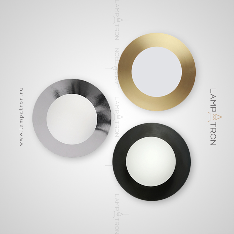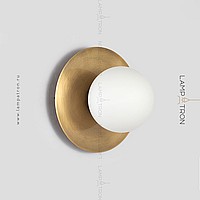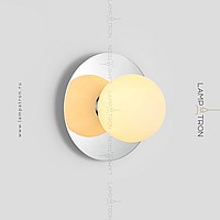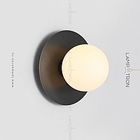 A series of wall lamps with a spherical matte glass of glass on a disc shameful metal base