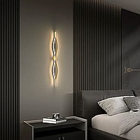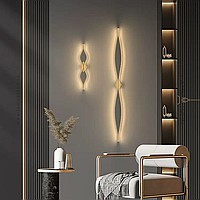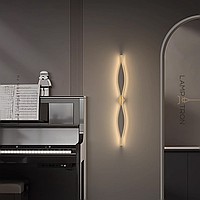 Wall lamp made of two symmetrically curved contour strips with LED lighting