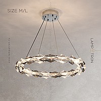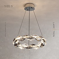 A series of ring LED chandeliers with crystal diffusers in the form of rhombic overlay plates