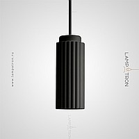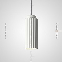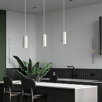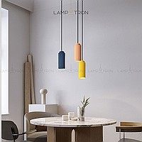 A series of multi -colored suspended lamps with an elongated cylindrical ceiling