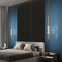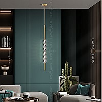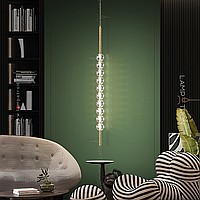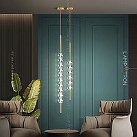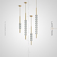 A series of LED lamps with multifaceted spherical crystal ceiling on a tubular frame