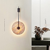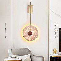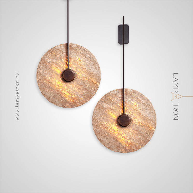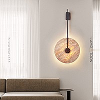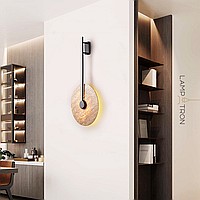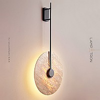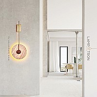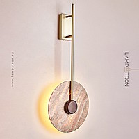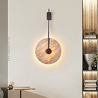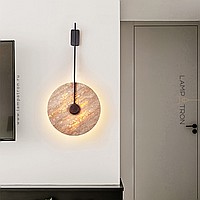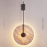 Wall mounted LED light with flat disc diffuser with stone texture and wooden center