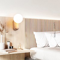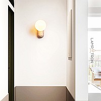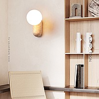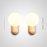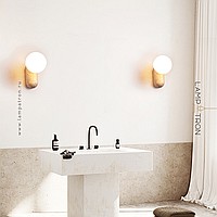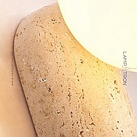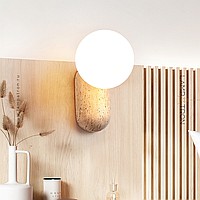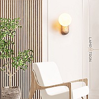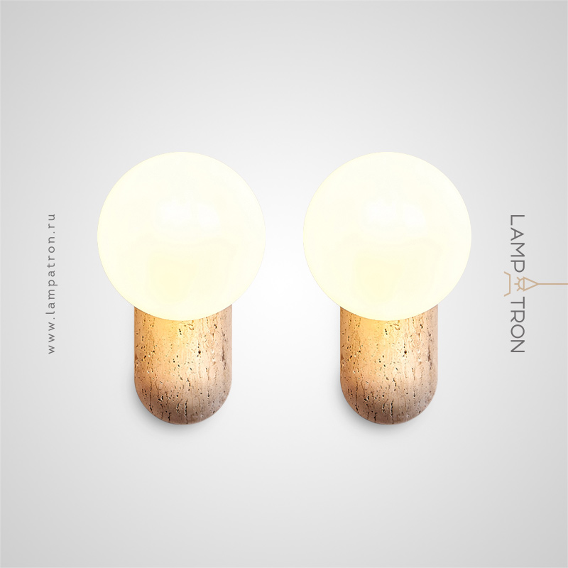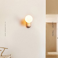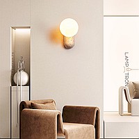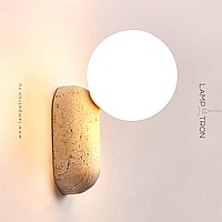 Wall lamp with a spherical glass shade on a rounded base made of travertine stone