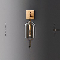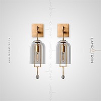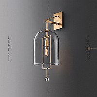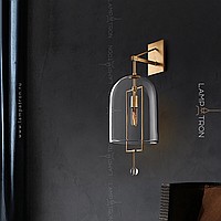 A wall lamp with a double glass plafon and a decorative metal frame with a glass suspension