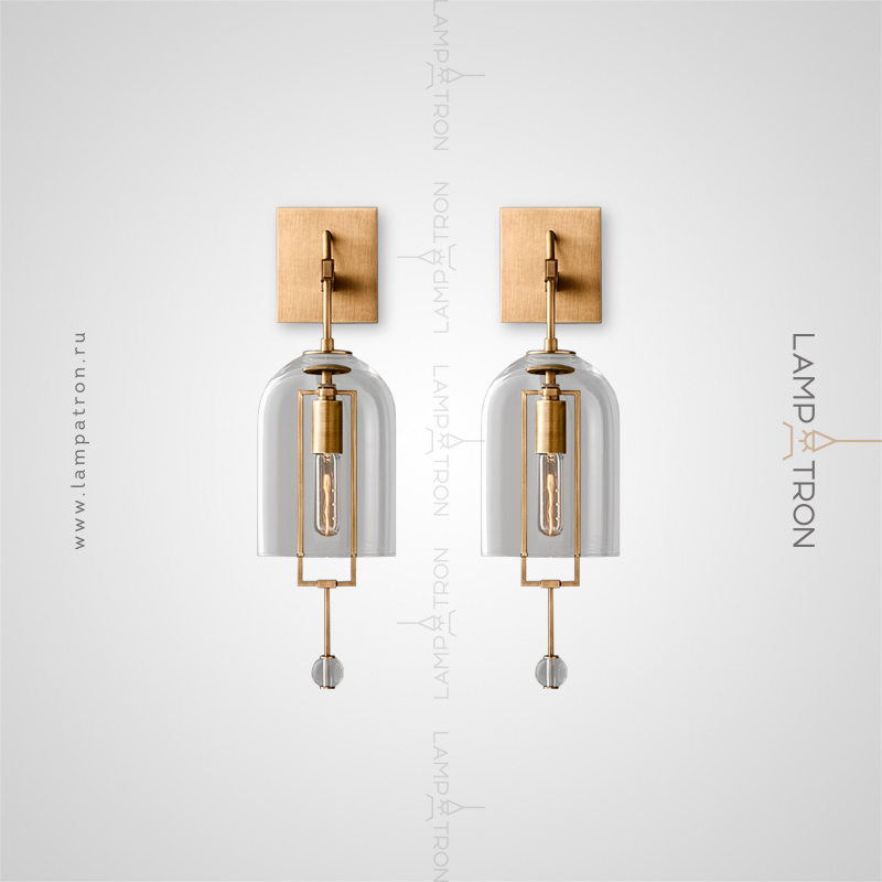 A wall lamp with a double glass plafon and a decorative metal frame with a glass suspension