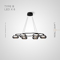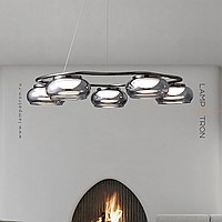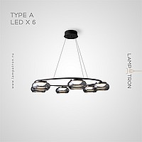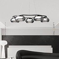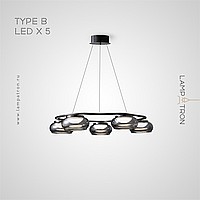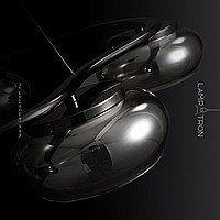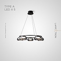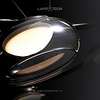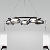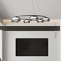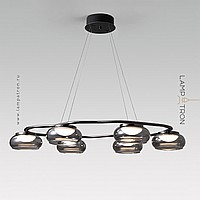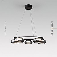 A series of ring chandeliers with hemispherical sources in rounded smoked glass shades