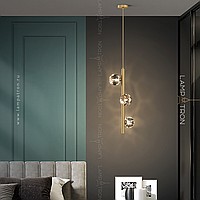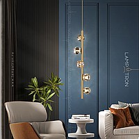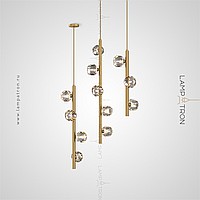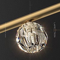 A series of designer lamps with multifaceted crystal ceiling on a brass tubular case