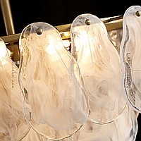 A rack lamp with a double -row lampshade of glass pendants with a white smoke effect