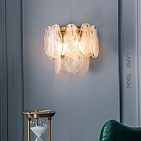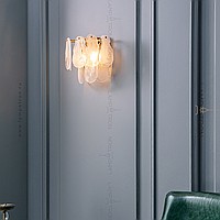 Wall lamp with a decor of embossed glass with a smoky-white pattern