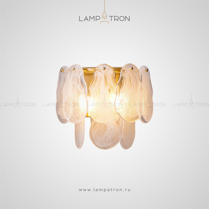 Wall lamp with a decor of embossed glass with a smoky-white pattern