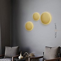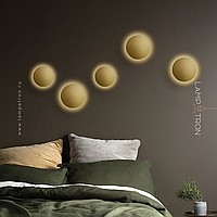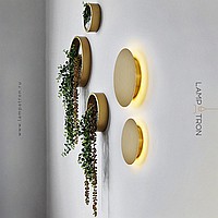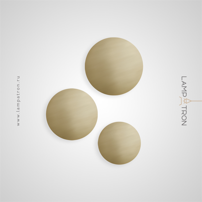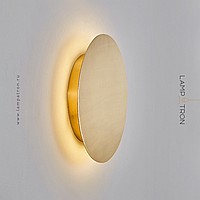 A series of LED wall lamps with flat disc-shaped diffusers made of real brass